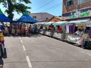 A feira, reforça aquela assessoria, dispõe de barracas padronizadas para os produtores rurais comercializarem diversos produtos, como inhame, batata-doce, macaxeira, coco, pimentão, alface, coentro, cebolinha, pimentão e couve, além de produtos do artesanato indígena.