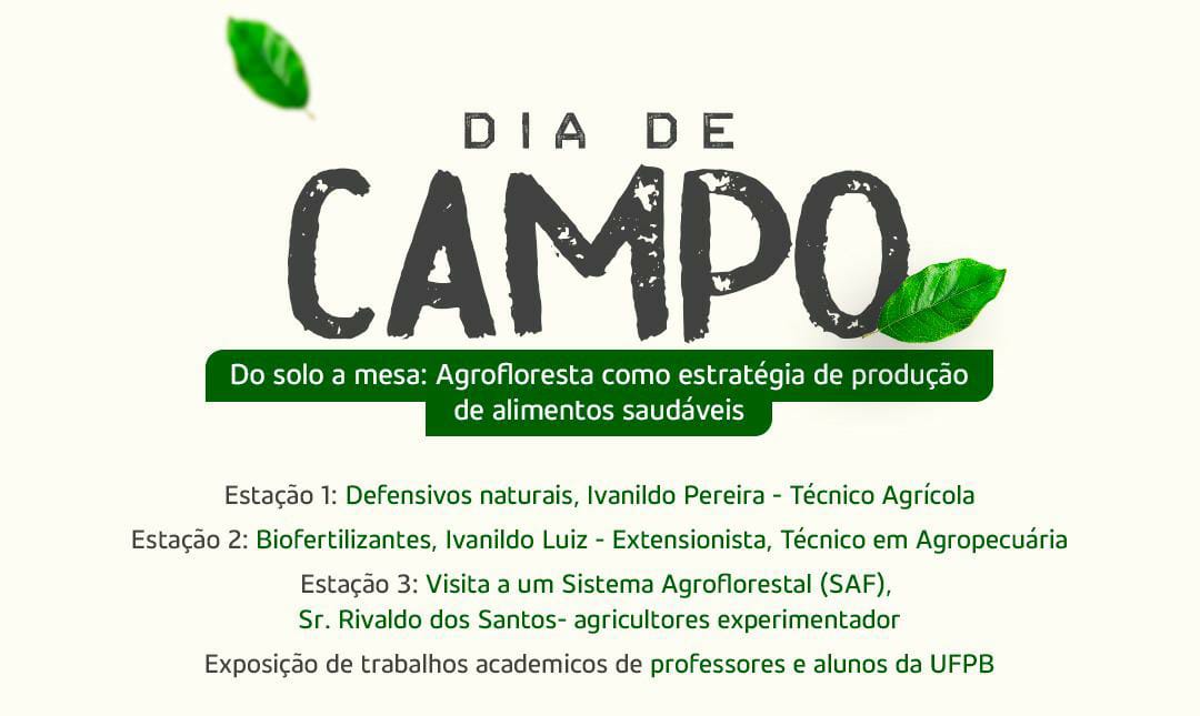 O Dia de Campo é uma promoção da SOS Sertão, dentro do Projeto ATER Bem Viver Semiárido, numa parceria com o Instituto Nacional do Semiárido, Universidade Estadual da Paraíba, Anater e Ministério do Desenvolvimento Agrário e Agricultura Familiar trazendo inovações e conhecimentos na programação. “Teremos famílias agricultoras dos municípios de Cuité, Damião, Soledade, Algodão de Jandaíra, Remígio e Arara num coletivo de aproximadamente 50 agricultores e agricultoras, teremos componentes entre equipe técnica e palestrantes com cerca de 15 pessoas e uma comitiva da UFPB, Campus Areia, com estudantes e dois professores que farão apresentação de um projeto daquela universidade”, explica o coordenador da SOS Sertão, Valdivan Rosendo.