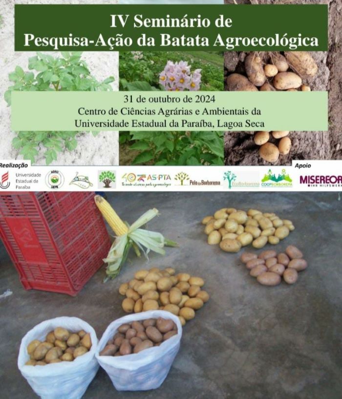O Centro de Ciências Agrárias e Ambientais da Universidade Estadual da Paraíba, Campus Lagoa Seca, será sede do IV Seminário de Pesquisa-Ação da Batata Agroecológica, em evento que acontece nesta quinta-feira, 31 de outubro, naquele Campus, com início previsto para às 08:00 e organizado pelo Grupo de Pesquisa Agrobiodiversidade do Semiárido da UEPB, em parceria com a AS-PTA, Polo da Borborema, Ecoborborema e Coopborborema.