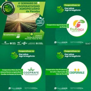 Na próxima quarta-feira, 18 de setembro, a programação conta com a realização do 4º Seminário do Cooperativismo Agropecuário da Paraíba que acontecerá apresentando palestras e debates sobre o desenvolvimento e fortalecimento do cooperativismo no estado e no Brasil. ( Inscreva-se aqui ).