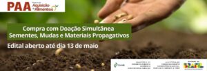A Companhia Nacional de Abastecimento (Conab) lançou o Edital de Chamada Pública do Programa de Aquisição de Alimentos – PAA Sementes objetivando seleção de propostas apresentadas por organizações fornecedoras da agricultura familiar para aquisição e doação de sementes e materiais propagativos, tais como mudas e similares, no âmbito do Programa de Aquisição de Alimentos – PAA, modalidade Sementes.