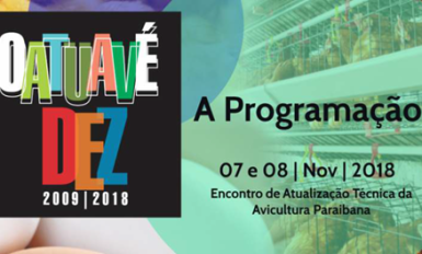 Em sua décima edição, a cidade de Campina Grande vai sediar mais um encontro de avicultores e representações da área da avicultura num processo de capacitação técnica da cadeia da criação. Durante os próximos dias 07 e 08 deste novembro acontecerá o 10º ATUAV, Encontro de Atualização Técnica da Avicultura Paraibana, tendo como local o […]