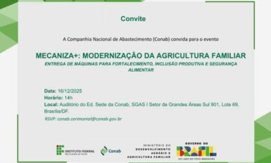 Com entrega simbólica de 13 maquinários a representantes de 13 entidades de agricultores de 13 estados pertencentes a todas as regiões do país, a Companhia Nacional de Abastecimento (Conab) inicia, nesta terça-feira (16), às 14h, a distribuição de 222 equipamentos (compostos, no total, por 1.200 itens), todos provenientes do projeto “Mecaniza+: Modernização da Agricultura Familiar”, […]