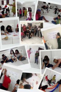 A ação é coordenada pela pedagoga, educadora social e terapeuta integrativa, Socorro Freitas, em parceria com a especialista em direitos humanos e educação em gênero Luana Rodrigues, ação que se iniciou ainda em formato virtual, no ano de 2020. “Foi como resultado dessa interação que foram produzidos o e-book e o vídeo ‘Educação Contextualizada – Outros Caminhos Possíveis’, que trazem a sistematização dessa formação a fim de contribuir para que crianças e jovens tenham acesso a Educação Contextualizada, valorizem saberes da comunidade e ampliem seus conhecimentos sobre direitos, educação alimentar, equidade de gênero e respeito à diversidade”, explica acrescentando que a ideia propõe a realização de um levantamento de dados que começa pelo diagnóstico individual, para ver como cada pessoa se sente e como passou por esse processo, as marcas deixadas em cada uma e como isso afeta suas vidas.