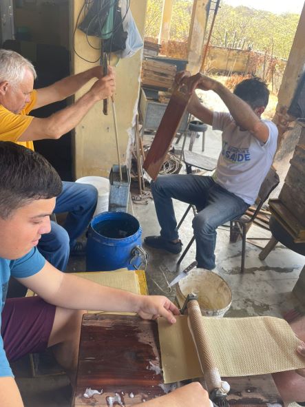 Famílias agricultoras com trabalho da apicultura na agricultura familiar dos municípios de Caicó, São João do Sabugi e Serra Negra, Seridó do Rio Grande do Norte; e do município de Várzea, na Paraíba, participaram de um mini curso sobre beneficiamento de cera alveolada e feitio do bife proteico para abelhas com ferrão.