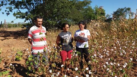 “Estou muito feliz em voltar a plantar algodão agora”, explica a agricultora Maria José de Lima Lindoso, Neinha, residente no Sítio Cachingó, município da Prata, dizendo que, pelos resultados apresentados, continuará plantando no próximo ano de forma ampliada. “Foi ótimo ter voltado essa atividade de novo para os agricultores, é mais uma ajuda”, explica evidenciando o papel da Embrapa e entidades parceiras que assessoram a agricultura local. “Marenilson é da Embrapa e está sempre lá com Maria Amália orientando a gente e sempre tirando as dúvidas também”.