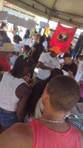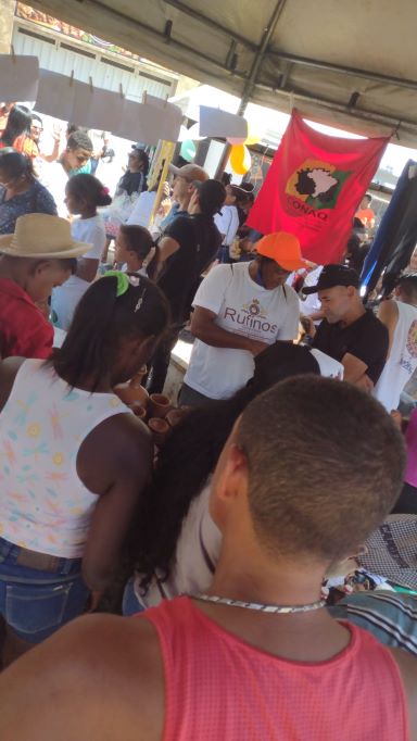 “Quero agradecer o apoio e a presença de todos aqui fazendo a nossa feira das comunidades quilombolas, pra mim é uma honra estar com nossos companheiros e companheiras da comunidade Cruz da Tereza e as demais comunidades de Cajazeirinhas, Catolé, dentre outras que fortalecem essa feira”, explica a agricultora Damiana Tomaz, residente na comunidade quilombola Cruz da Tereza, município de Coremas