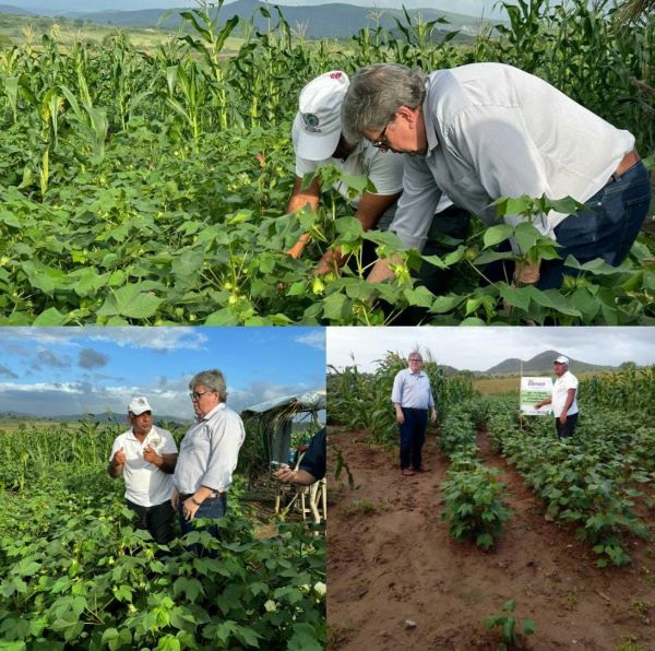 “A gente aproveitou essa decisão dele de visitar a obra do Reassentamento Agrovila Águas de Acauã pra gente colocar dois pontos pra ele visitar, não apenas a estrutura física das casas, mas também a produção que é um conjunto de organização feita que é as casas, adutora que está sendo feita e quase pronta, então não tem sentido pra nós só as moradias, então a gente queria mostrar pra ele o potencial da agricultura familiar em produzir, antes mesmo de estar morando na agrovila, já que a nossa preocupação é ele conhecer o que está sendo feito com o apoio que a gente teve da Empaer, e a gente sabe das limitações da Empaer, a gente sabe que tem um grupo muito competente e comprometido com a agricultura familiar do estado da Paraíba, através do gerente da Empaer Paulo Emílio e seus técnicos que têm acompanhado muito bem”, explica Osvaldo ao comemorar a ampla mostra feita ao governador João Azevêdo detalhando a forma de como as famílias estão fazendo agricultura sustentável. “É isso que a gente quer mostrar que a saída da crise econômica e alimentar parte pelo acesso a terra, pra se ter uma ideia a gente começou em 2022 plantando um roçado agroecológico simbólico, em 2023 a gente fez já uma área de seis hectare produzindo quase cinco toneladas de algodão agroecológico e fora a diversidade que se tem com milho, feijão, fava, gergelim e agora em 2024 a gente está produzindo quase 20 hectares de algodão branco agroecológico e uma coisa importante é que a gente está fazendo a certificação desse algodão para que a gente possa chegar até outros países, inclusive os Estados Unidos”, reforça Osvaldo em entrevista. (Clique e ouça Programa Notícias Agrícolas).