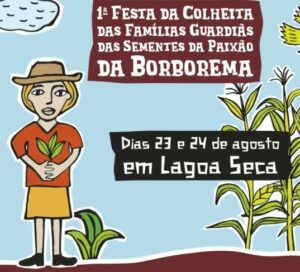 A cidade de Lagoa Seca, Agreste paraibano, vai sediar durante a próxima terça e quarta-feira, 23 e 24 de agosto, a 1ª Festa da Colheita das Famílias Guardiãs das Sementes da Paixão da Borborema apresentando dinâmicas e resultados da produção e compartilhamento dos conhecimentos.
