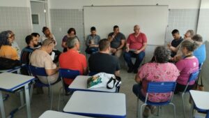Lideranças de movimentos populares do campo e cidade de Campina Grande e região reunindo-se pra discutir questões relacionadas as ações ambientais e impactos na vida da agricultura, do meio ambiente, dentre outros.