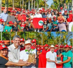 Representações da direção nacional do Movimento dos Trabalhadores Rurais Sem Terra se reuniram com o Presidente Luiz Inácio Lula da Silva, no último sábado, 17 de agosto, na Granja do Torto, em Brasília, dentro de seus 40 anos de luta e presentearam o presidente com produtos da Reforma Agrária vindos de todo país, plantaram mudas de árvores que foram levadas de assentamentos do MST localizados em todos os biomas do Brasil simbolizando a preocupação do Movimento em construir saídas populares para a crise ambiental.