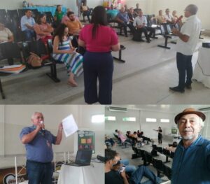 Extensionista rural da Empaer e componente da SEAFDS como mobilizador territorial do governo junto aos 17 territórios, Antônio Ferreira Filho; e o assessor da mesma secretaria de governo, Marcos Patrício Farias, fizeram exposição falando sobre ações e projetos do governo paraibano no ano de 2024, ações parceiras com o Governo Federal e ao mesmo tempo apresentaram o planejamento da secretaria a ser trabalhado no exercício 2025. “Eu vou trazer aqui pra vocês alguns programas e ações da secretaria, alguns que já estão acontecendo e outros que estão numa ampla agenda tipo o Incluir Paraíba, PBTEC na agricultura familiar, Paraíba Produtiva, Procase 01 que já foi executado e 02 que já está sendo elaborado, políticas de sementes, mecanização agrícola para a agricultura familiar, eventos como o Circuito Nordestino de Feiras e, pra fechar, eu trago as discussões do Conselho Estadual de Desenvolvimento Rural Sustentável e os CMDRS”, inicia Patrício antecedendo o detalhamento da exposição. “Eu gostaria de evidenciar as expectativas para esse ano 2025, e quero evidenciar a descontinuidade da política territorial do governo federal em 2016 com o afastamento de Dilma onde houve também a descontinuidade da política territorial, e em dezembro de 2020, Patrício lembrou bem, o governo do estado da Paraíba instituiu os territórios paraibanos alinhados com as regiões geoadministrativas, isso foi através de uma nota técnica de 2020 do Conselho Estadual. Em 2023 houve uma retomada da política territorial pelo governo federal e exemplo de ações concretas do governo federal, a partir de 2023, que já estão sendo ofertadas aos territórios: primeiro o Projeto Dom Helder Câmara III onde foram contemplados aqui na Paraíba o Território Médio Sertão, Cariri, Médio Piranhas e Serra do Teixeira e o Programa Mais Gestão que é uma oferta de política pública do governo federal e na Paraíba vai atender os Territórios do Seridó e também o Território do Curimataú”, inicia Ferreira Filho detalhando um conjunto de ações em políticas de governo já em andamento enfatizando a urgente necessidade de estruturar e fortalecer os fóruns territoriais.