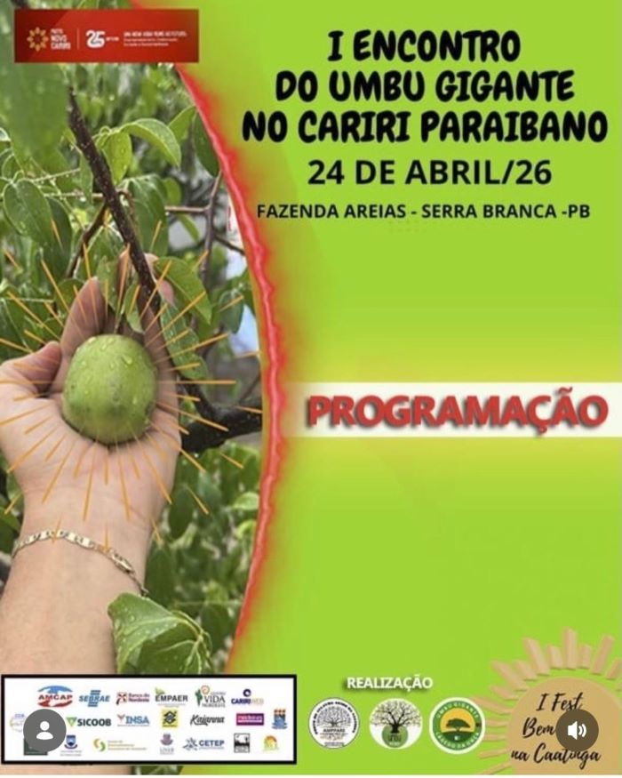 Discutir a cultura do umbu, com ênfase no Umbu Gigante, será meta trabalhada em evento que acontecerá na próxima sexta-feira (24), na Fazenda Areias, zona rural de Serra Branca, Cariri Ocidental paraibano.