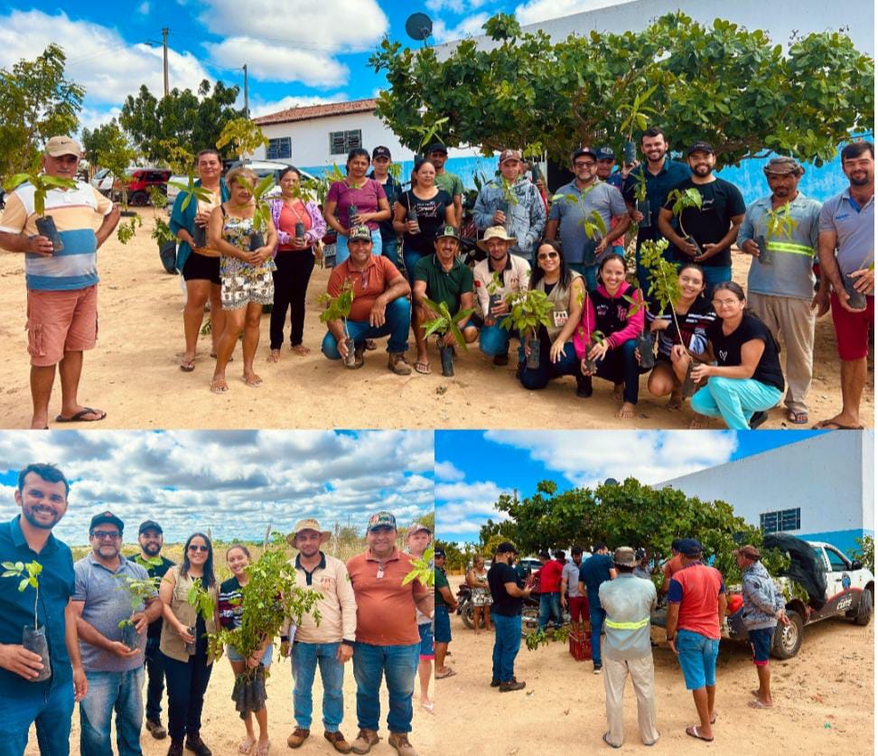 Conforme Thamillys, foram distribuídas mudas de aroeira, ipê rosa, ipê roxo, ipê amarelo, caraibeira, leucena e gliricídia, todas com potencial para o reflorestamento lembrando que a leucena e a gliricídia também oferecem função forrageira, contribuindo para a alimentação do rebanho em períodos críticos e que as mudas foram entregues diretamente aos agricultores e agricultoras como parte do compromisso de promover práticas sustentáveis e regenerativas no campo. “A presença dos técnicos e representantes das secretarias reforçou o envolvimento institucional com a causa ambiental e o fortalecimento das políticas públicas no território” reforça Thamillys evidenciando que cada muda entregue representa um passo concreto em direção a um futuro mais verde, resiliente e comprometido com a preservação do bioma e o bem-estar das comunidades rurais.